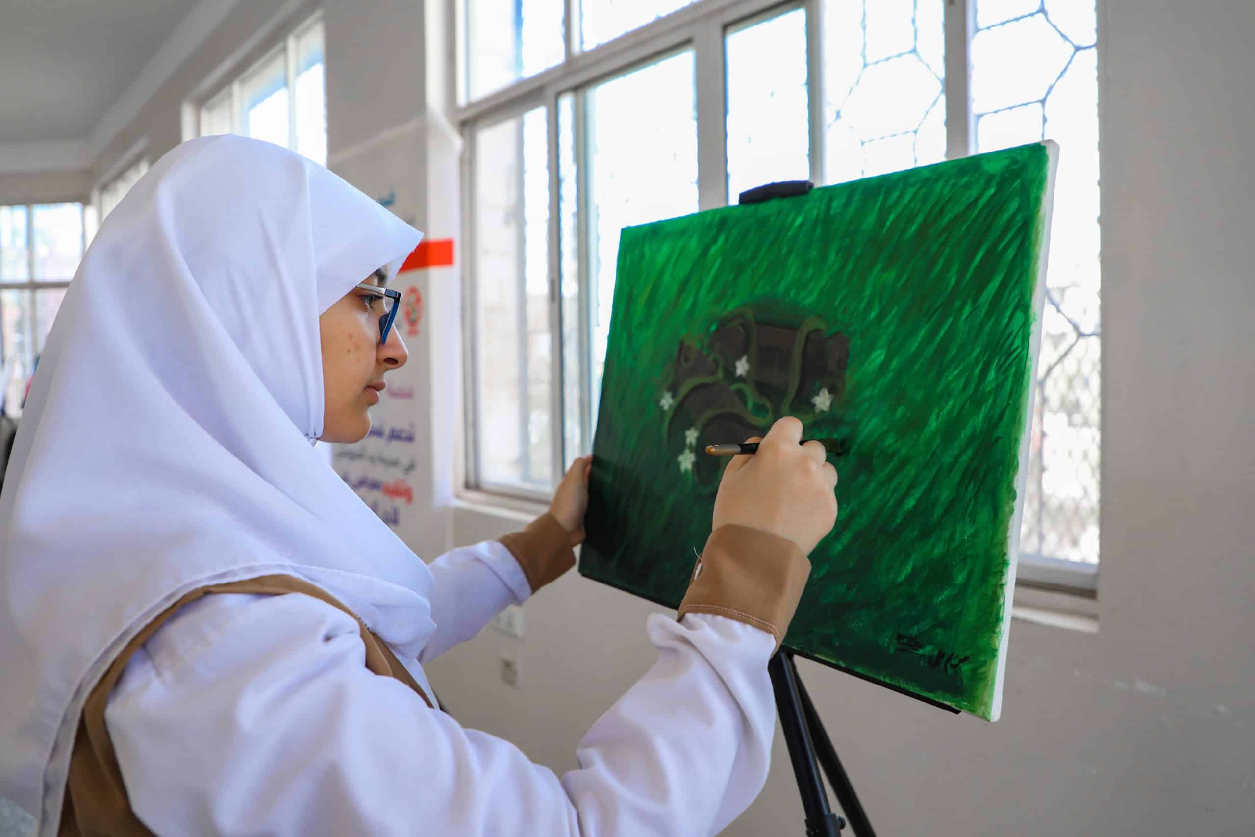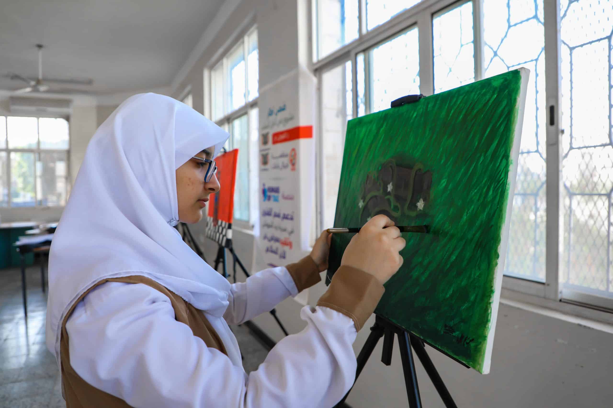 ”لوحتي تعبر عن أن الطبيعة وجمالها تهزم السلاح والحروب“.قالت