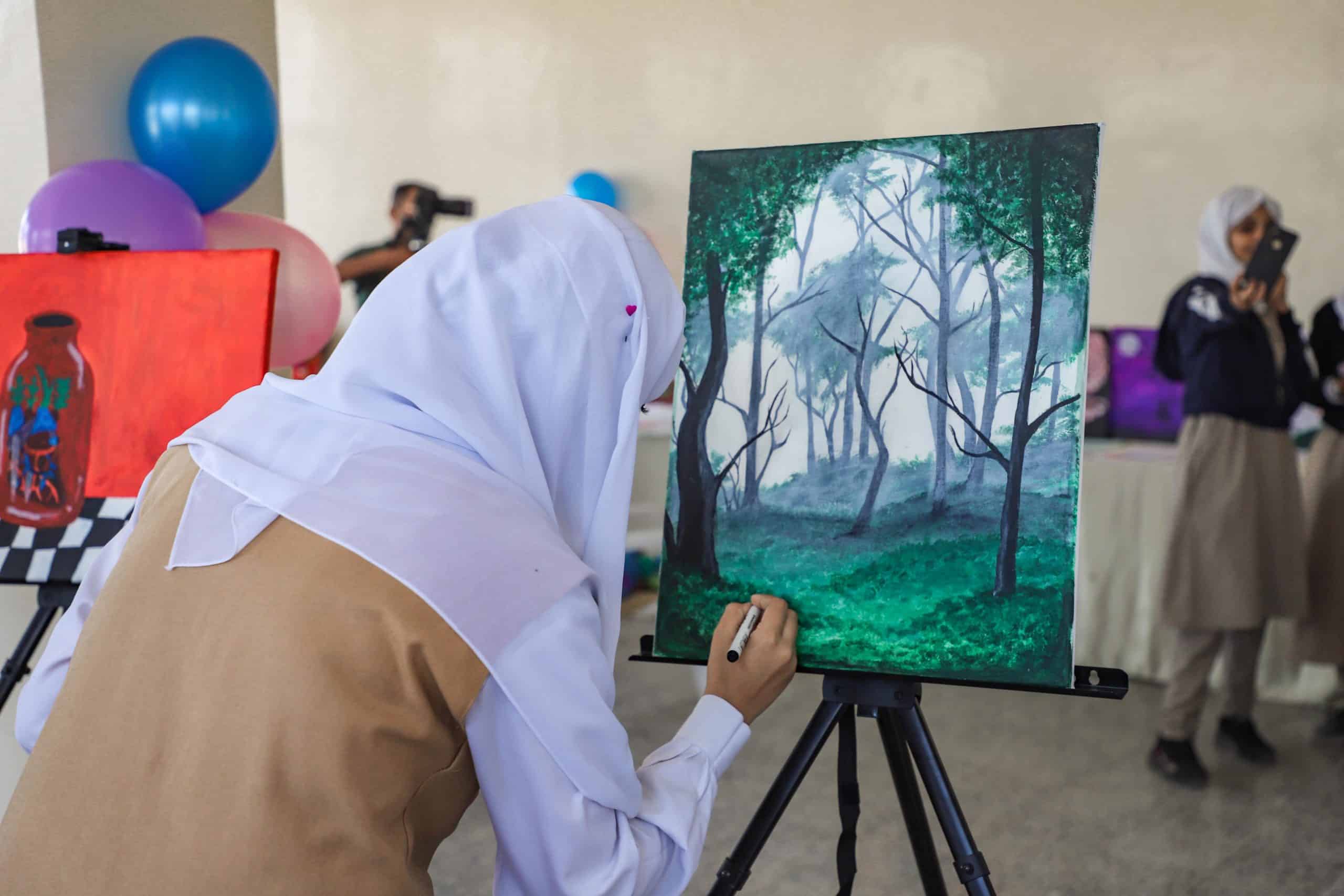 شاركت “فاطمة ماجد محمد” في المعرض الفني لمنصة “هيومنز اوف تعز” المقام في مدرسة الشهيد زيد الموشكي بلوحة للطبيعة وهي خالية تماما من الإنسان.